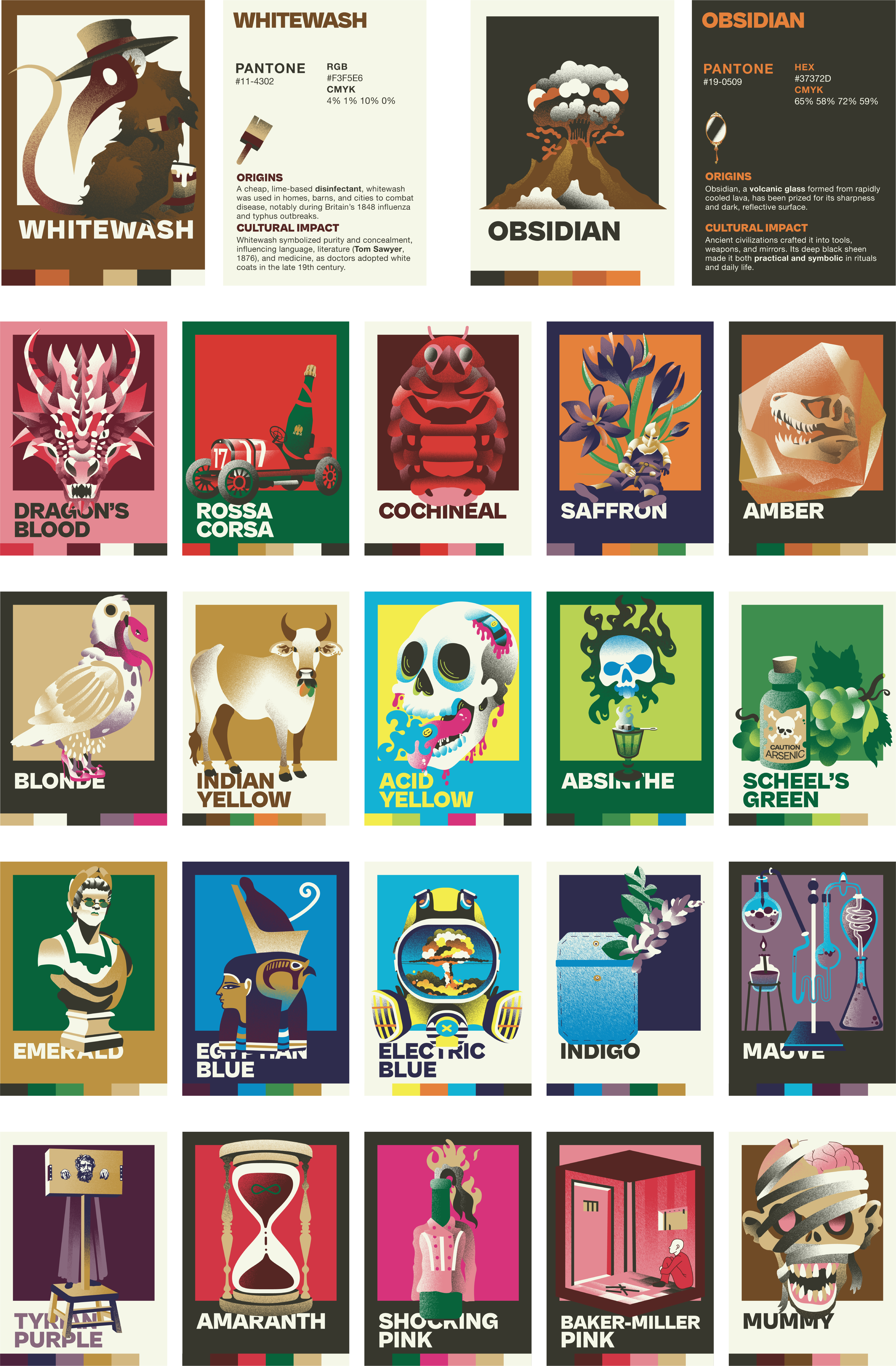 This project focuses on branding an exhibition showcasing 22 colors with unexpected cultural and historical impact. The campaign is built around two goals: communicating academic insight and encouraging creative exploration. Exhibition displays and advertising materials, including billboards, posters, and digital banners, invite viewers to see color as a tool for storytelling. The project uses illustration and thoughtful design to bring history to life in a bold, engaging way.